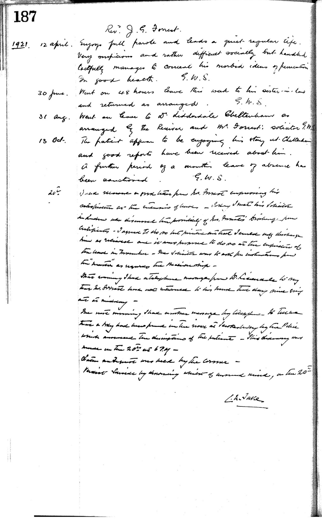 (uploaded a new version of "File:John Graham Forrest Medical Notes p187.jpg") |